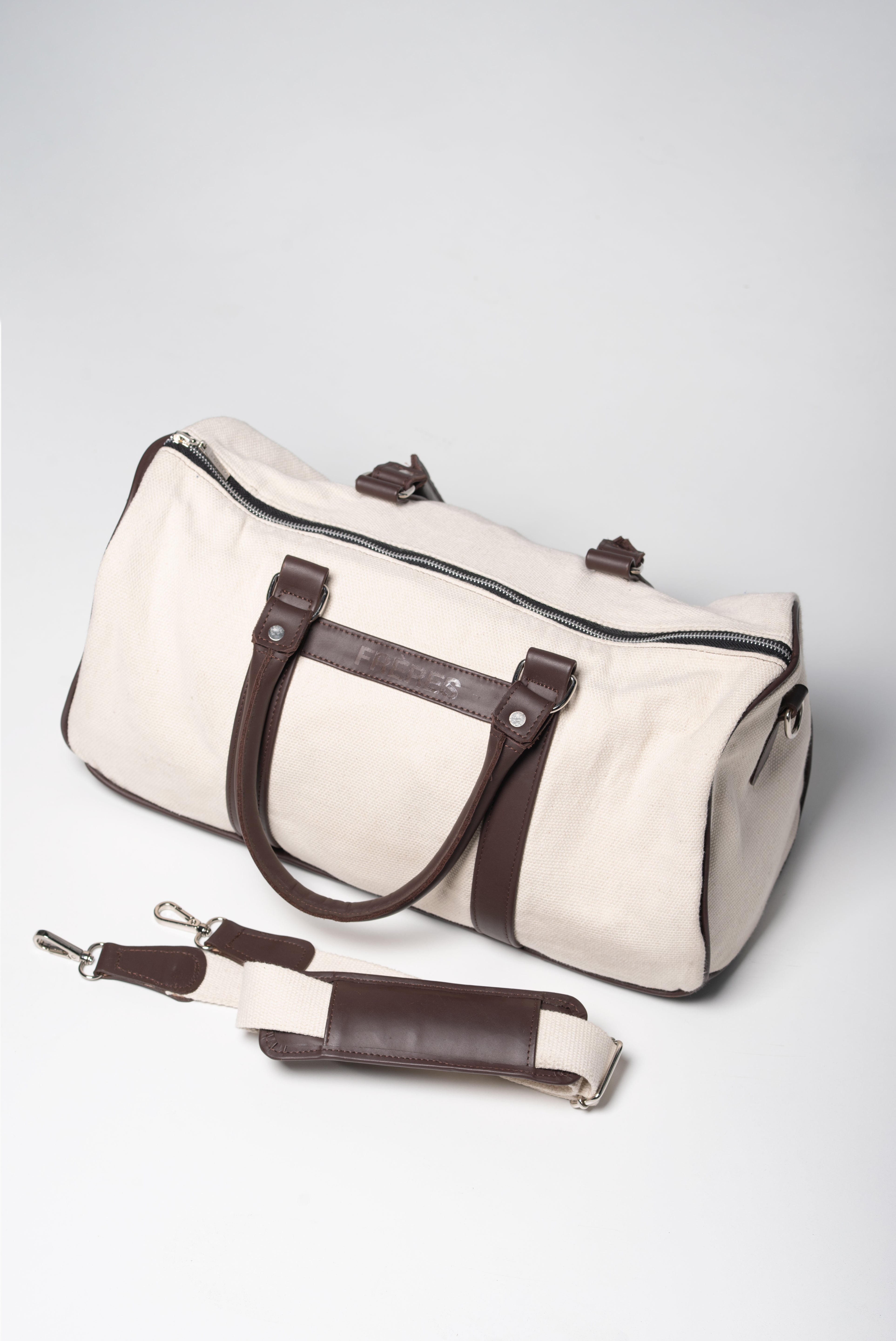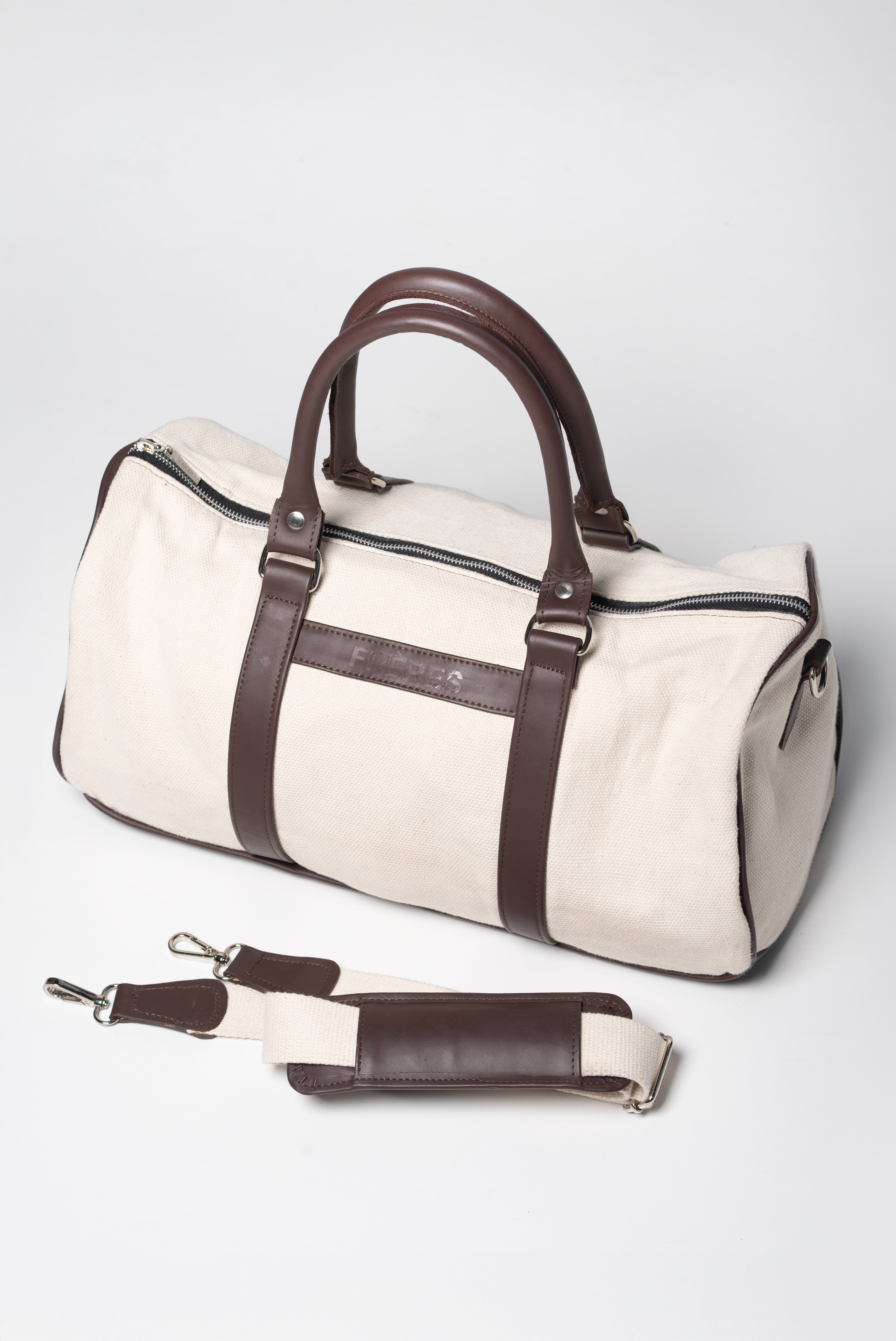 Diseñado para escapadas cortas o para acompañarte en el día a día, este bolso combina resistencia y elegancia en partes iguales. Confeccionado en lona de algodón natural y detalles en cuero vacuno, su estructura liviana pero firme y su diseño limpio reflejan el estilo clásico de FRERES.