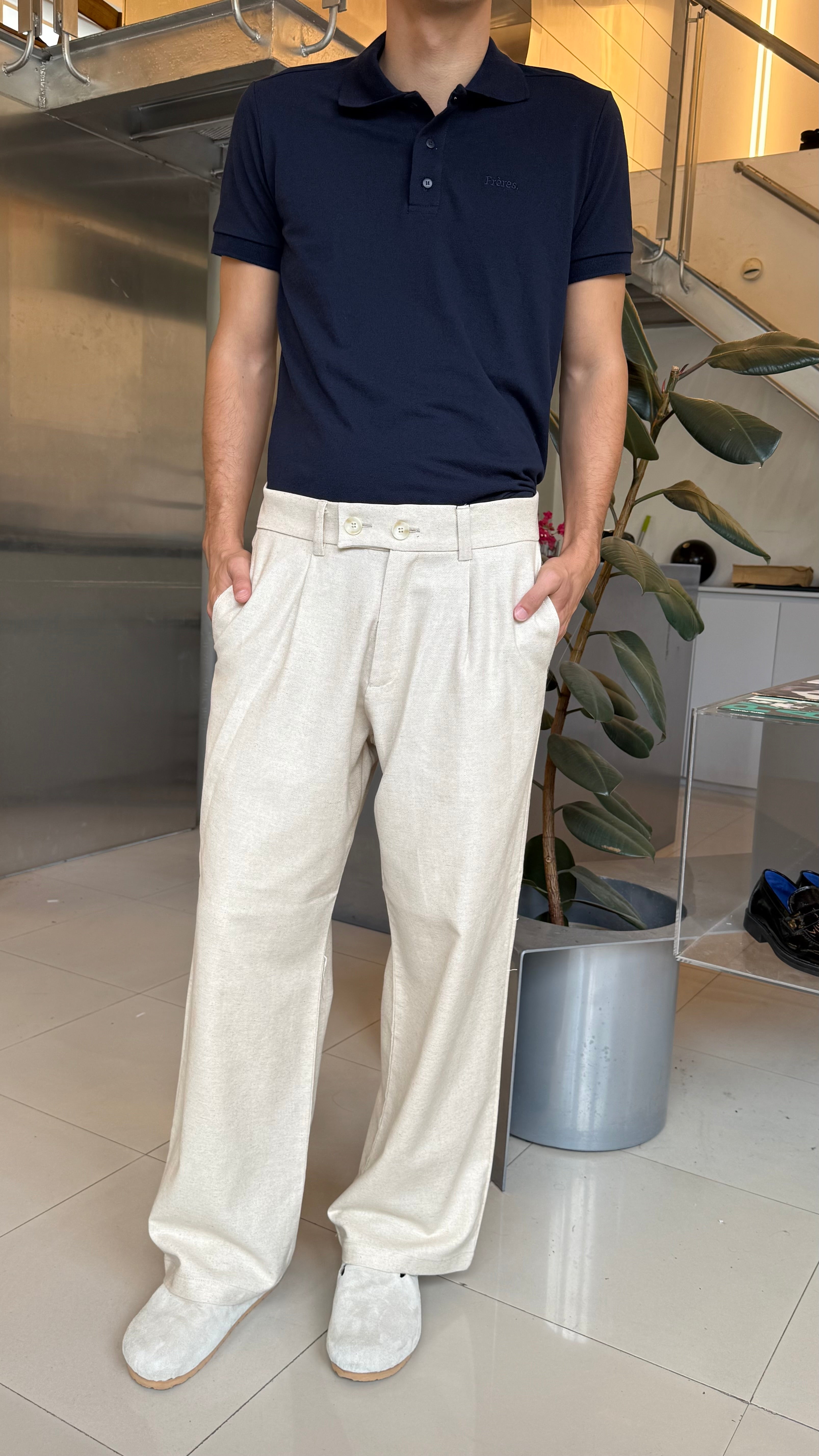 Pantalon Sastrero de Lino Crema