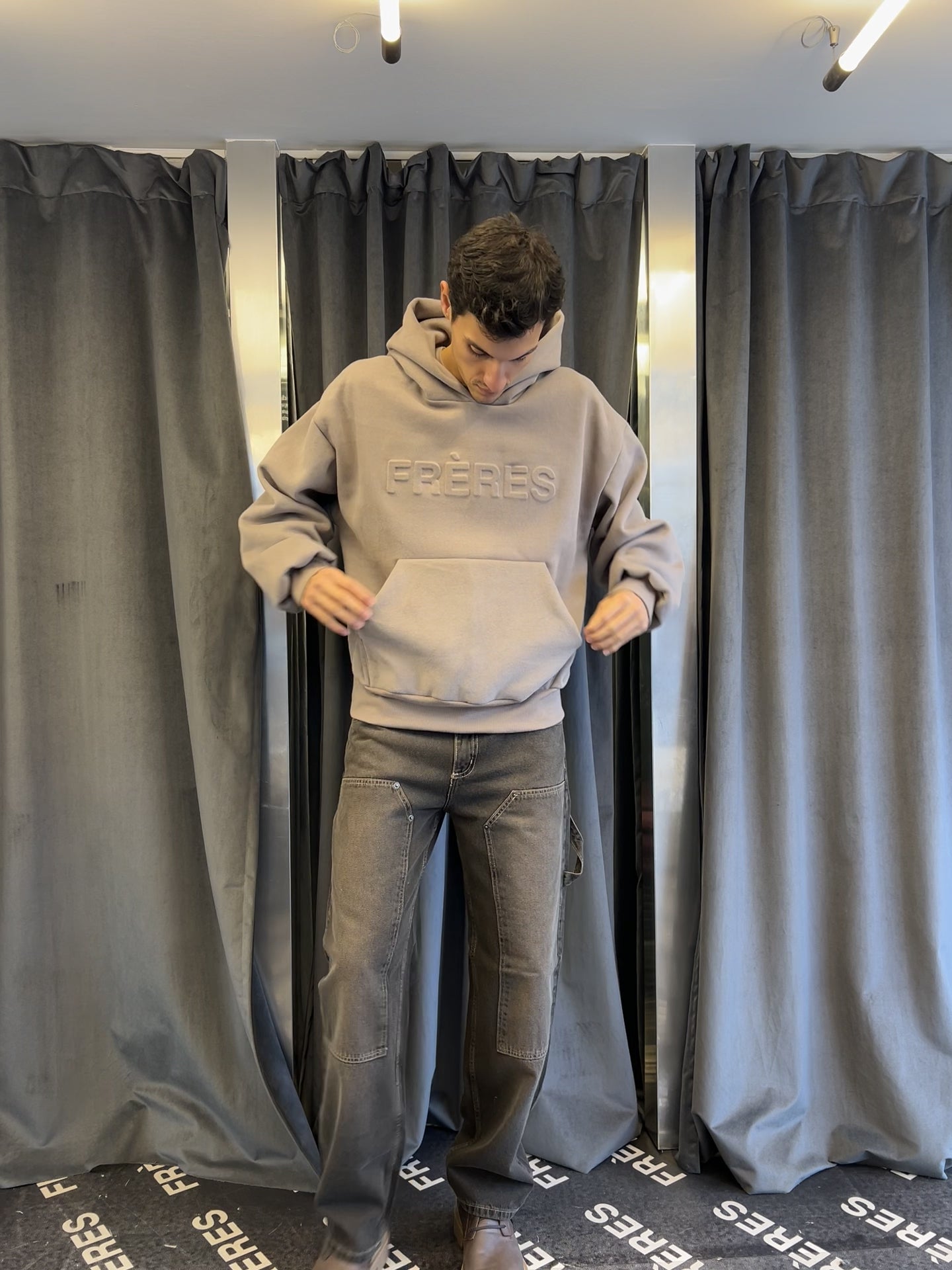 No es un buzo común, su tela está desarrollada desde cero por Frères, desde la elección del hilado, el código de teñido y el acabado esmerilado, que le da un tacto suave y una caída con cuerpo que se siente como si estuvieses en casa, todo el tiempo.