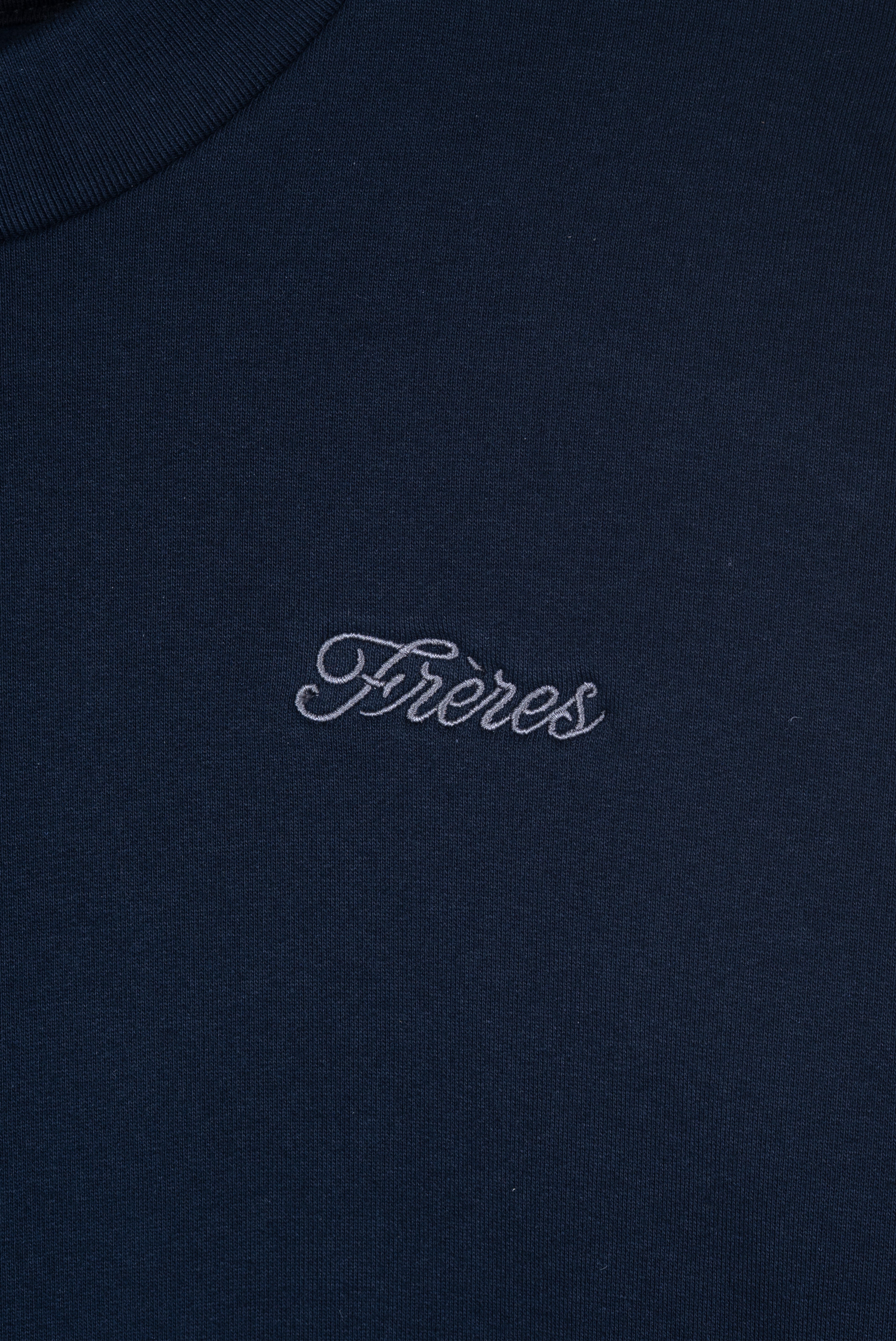 - Posee cuello tipo "crewneck" que rodea el cuello de manera justa para que no se vea la remera de abajo.