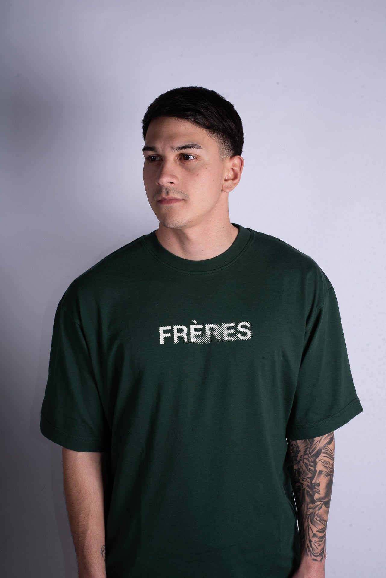 Nuestra moldería oversize busca cuidar el calce y comodidad, con un cuello redondo y ancho que abraza pero no trepa y que facilita la movilidad, mangas anchas arriba del codo, y un largo modular de torso que no sobrepasa excesivamente la cadera.
