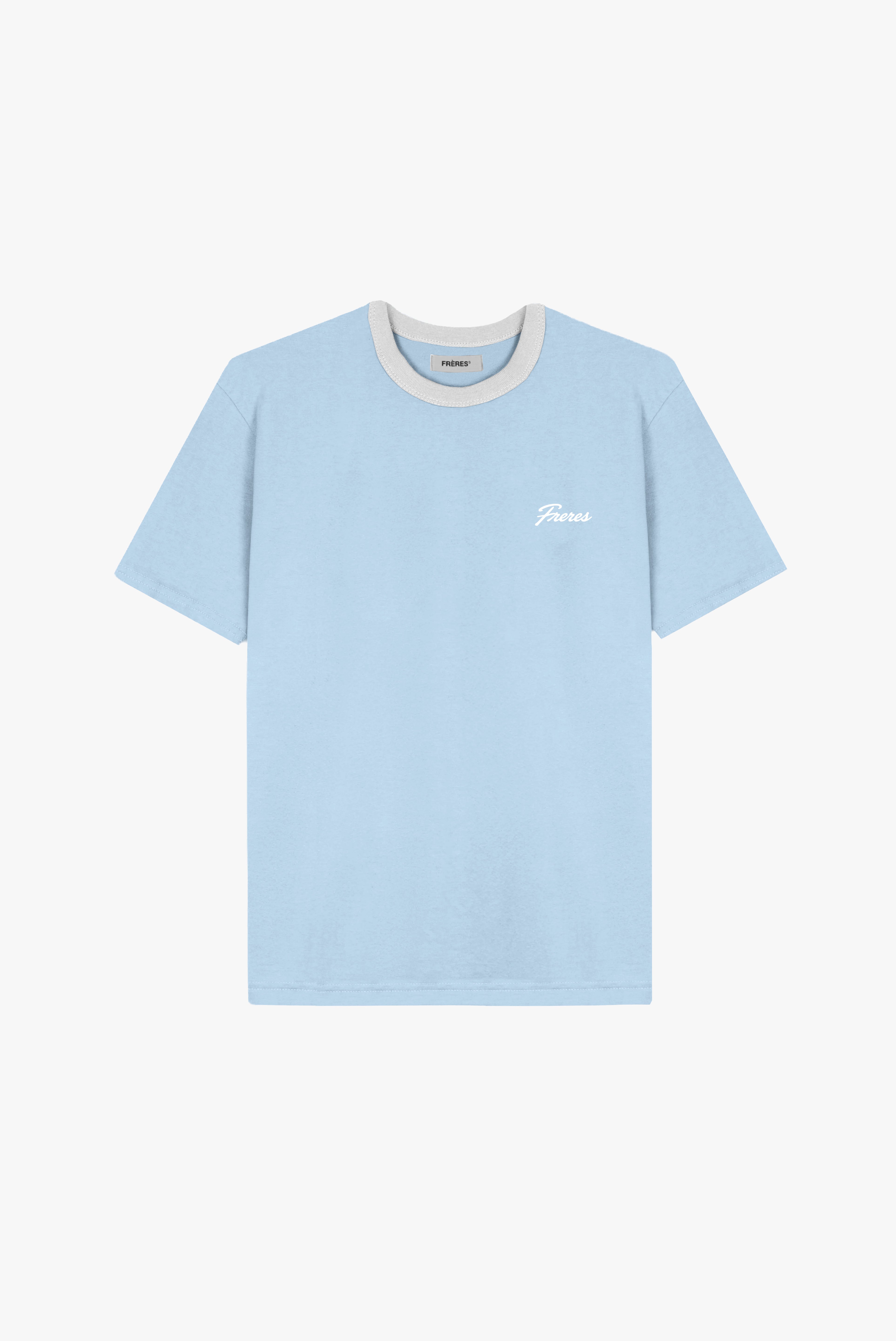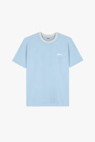 - Elaborada con jersey de algodón peinado 20/1, combinado con el cuello color blanco pegado por fuera.